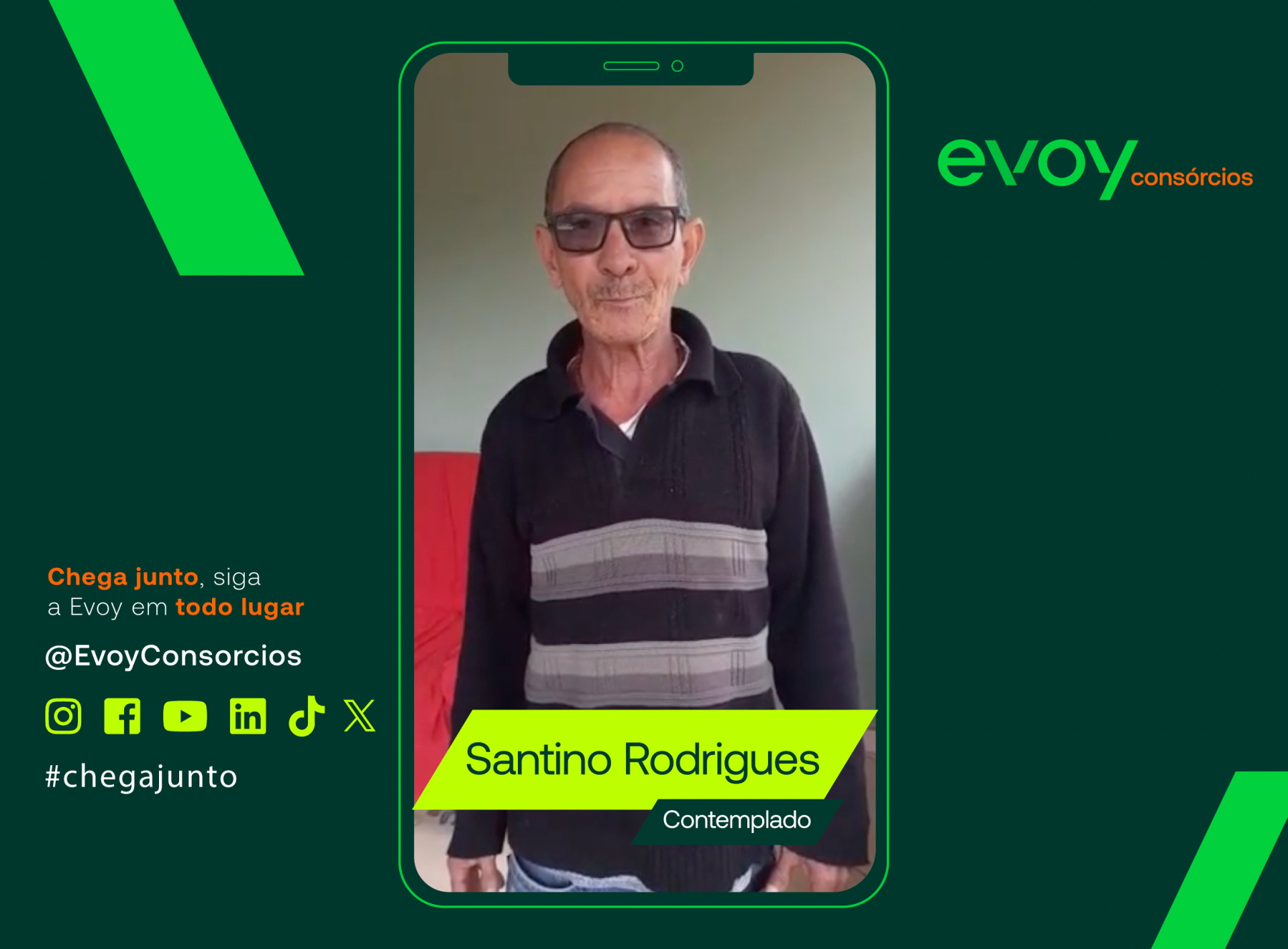 "Sou um dos contemplados da Evoy Consórcios, quero agradecer cada um né da equip...